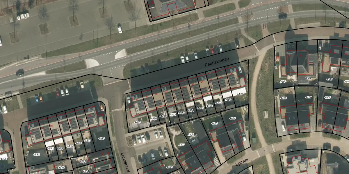 Fabriekslaan 53 is gelegen op kadastraal perceel UDN00I4493. Deze kadastrale aanduiding is uniek en wordt gebruikt door het Kadaster om eigendomsrechten en andere zakelijke rechten vast te leggen. Het perceel maakt onderdeel uit van de kadastrale gemeente Uden.