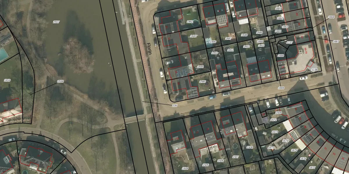 Florijn 16 is gelegen op kadastraal perceel UDN00P1445. Deze kadastrale aanduiding is uniek en wordt gebruikt door het Kadaster om eigendomsrechten en andere zakelijke rechten vast te leggen. Het perceel maakt onderdeel uit van de kadastrale gemeente Uden.