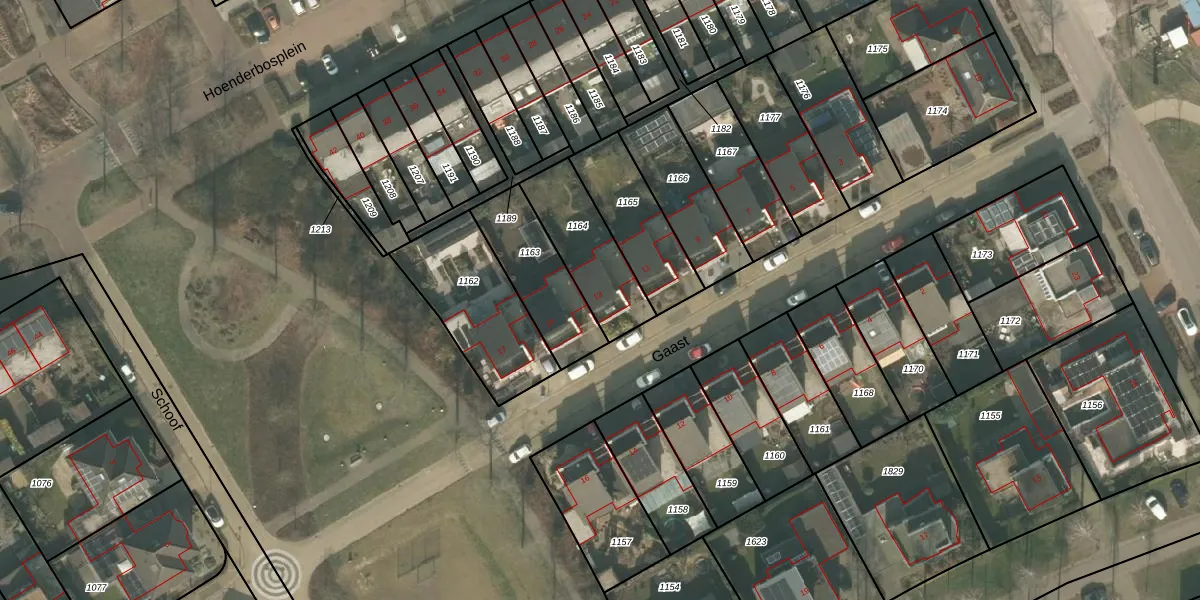 Het perceel waarop Gaast 13 staat heeft een oppervlakte van 281 m². Dit is een middelgroot perceel. De perceeloppervlakte wordt geregistreerd door het Kadaster. Gedetailleerde informatie over de maten van dit perceel kunt u vinden in het rapport Kadastrale kaart met maatvoering van Gaast 13.