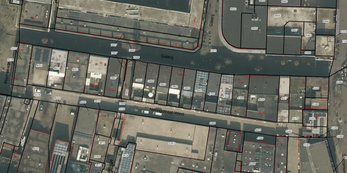 Het perceel waarop Galerij 16-A staat heeft een oppervlakte van 165 m². Dit is een middelgroot perceel. De perceeloppervlakte wordt geregistreerd door het Kadaster. Gedetailleerde informatie over de maten van dit perceel kunt u vinden in het rapport Kadastrale kaart met maatvoering van Galerij 16-A.