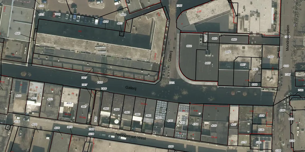 Het perceel waarop Galerij 19 staat heeft een oppervlakte van 572 m². Dit is een groot perceel. De perceeloppervlakte wordt geregistreerd door het Kadaster. Gedetailleerde informatie over de maten van dit perceel kunt u vinden in het rapport Kadastrale kaart met maatvoering van Galerij 19.