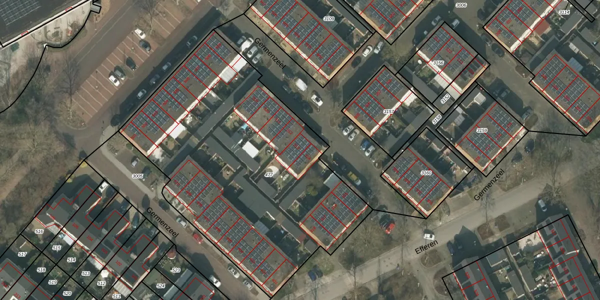 Germenzeel 313 is gelegen op kadastraal perceel UDN00N477. Deze kadastrale aanduiding is uniek en wordt gebruikt door het Kadaster om eigendomsrechten en andere zakelijke rechten vast te leggen. Het perceel maakt onderdeel uit van de kadastrale gemeente Uden.