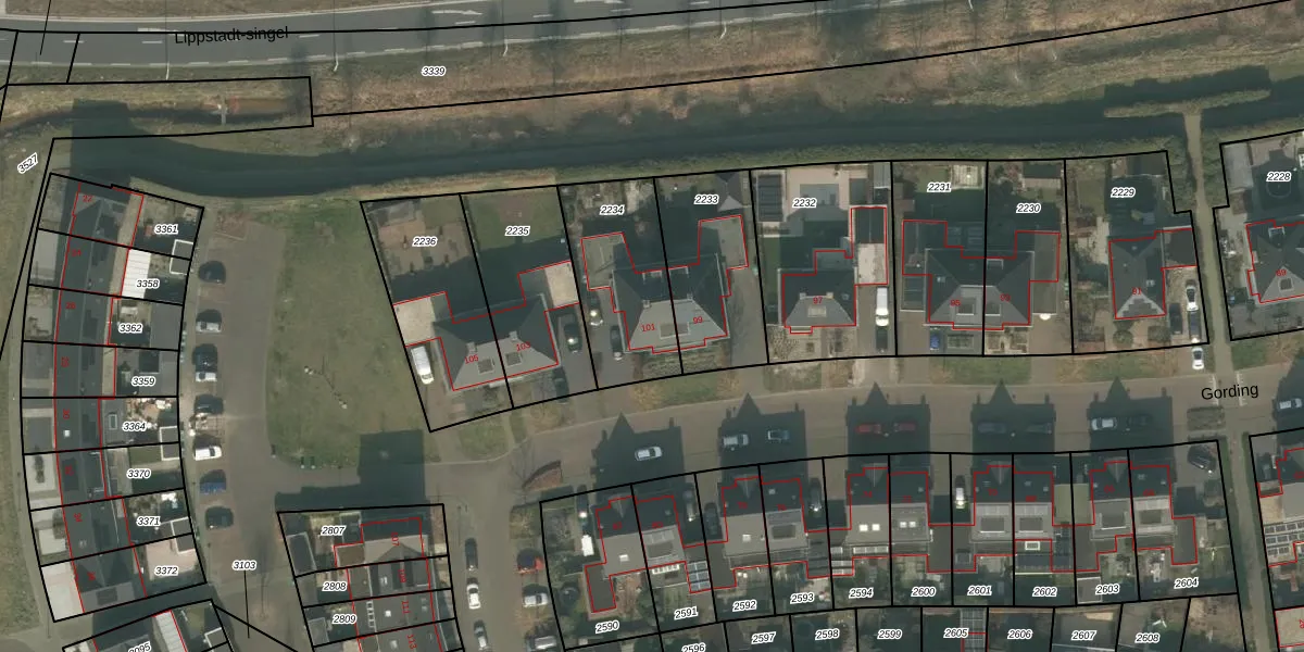 Gording 101 is gelegen op kadastraal perceel UDN00P2234. Deze kadastrale aanduiding is uniek en wordt gebruikt door het Kadaster om eigendomsrechten en andere zakelijke rechten vast te leggen. Het perceel maakt onderdeel uit van de kadastrale gemeente Uden.