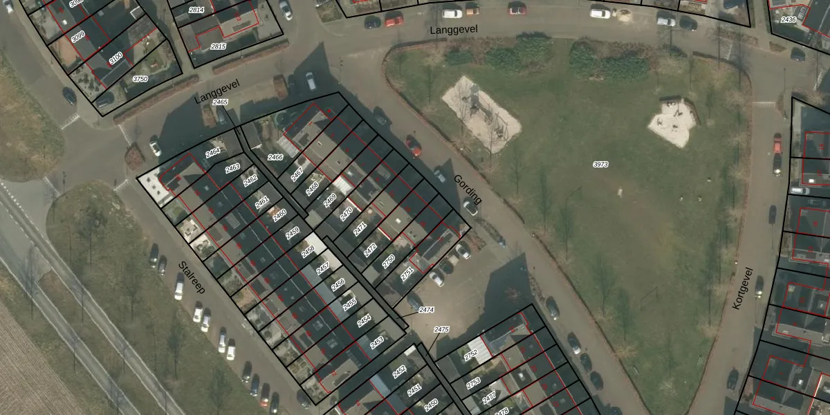 Het perceel waarop Gording 13 staat heeft een oppervlakte van 137 m². Dit is een middelgroot perceel. De perceeloppervlakte wordt geregistreerd door het Kadaster. Gedetailleerde informatie over de maten van dit perceel kunt u vinden in het rapport Kadastrale kaart met maatvoering van Gording 13.