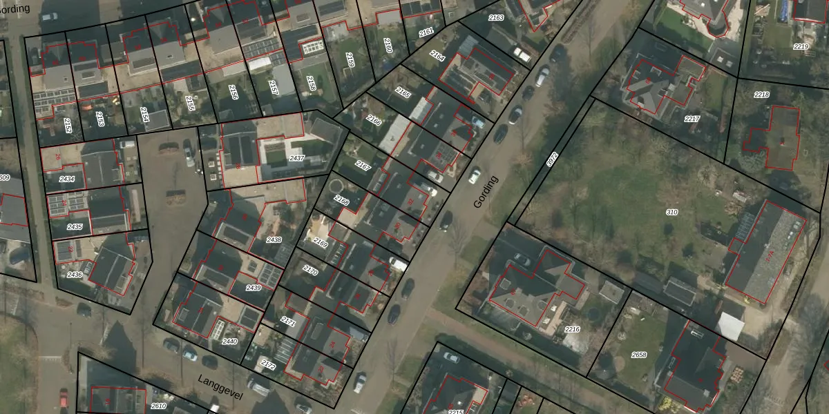 Gording 32 is gelegen op kadastraal perceel UDN00P2167. Deze kadastrale aanduiding is uniek en wordt gebruikt door het Kadaster om eigendomsrechten en andere zakelijke rechten vast te leggen. Het perceel maakt onderdeel uit van de kadastrale gemeente Uden.