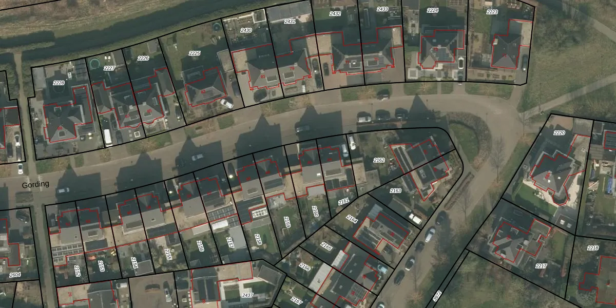 Gording 46 is gelegen op kadastraal perceel UDN00P2160. Deze kadastrale aanduiding is uniek en wordt gebruikt door het Kadaster om eigendomsrechten en andere zakelijke rechten vast te leggen. Het perceel maakt onderdeel uit van de kadastrale gemeente Uden.