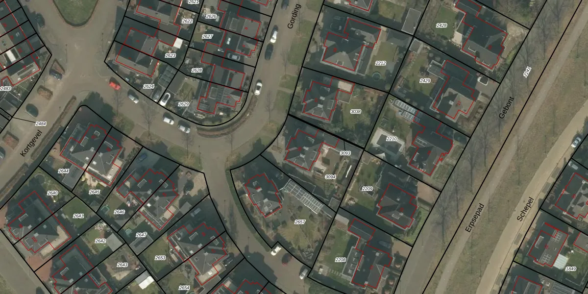 Het perceel waarop Gording 55 staat heeft een oppervlakte van 595 m². Dit is een groot perceel. De perceeloppervlakte wordt geregistreerd door het Kadaster. Gedetailleerde informatie over de maten van dit perceel kunt u vinden in het rapport Kadastrale kaart met maatvoering van Gording 55.