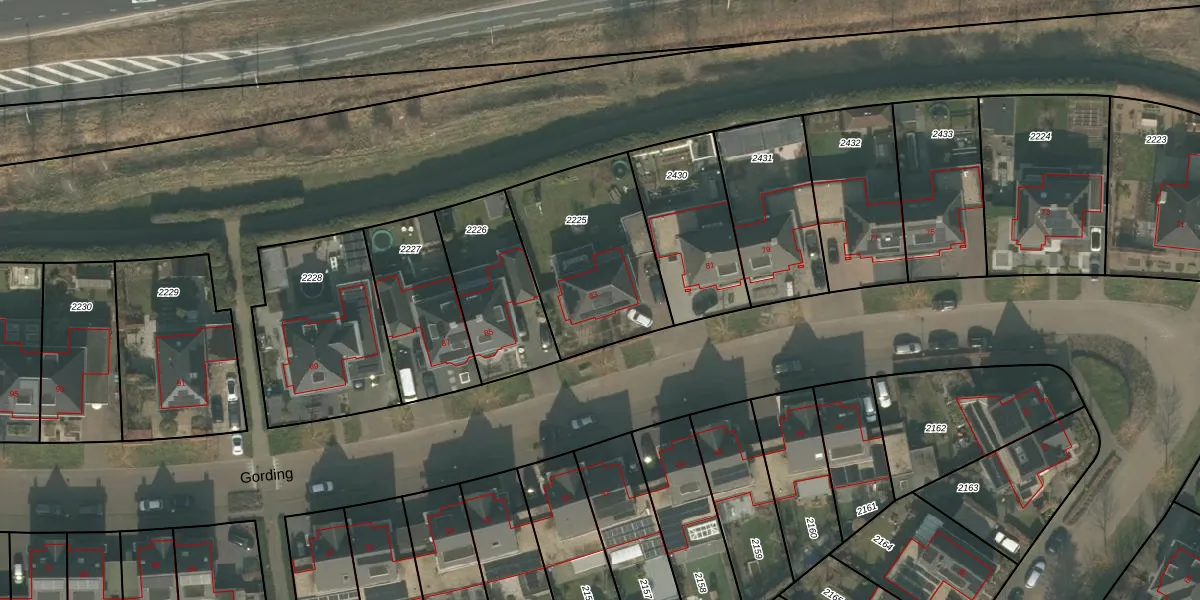 Het perceel waarop Gording 83 staat heeft een oppervlakte van 618 m². Dit is een groot perceel. De perceeloppervlakte wordt geregistreerd door het Kadaster. Gedetailleerde informatie over de maten van dit perceel kunt u vinden in het rapport Kadastrale kaart met maatvoering van Gording 83.