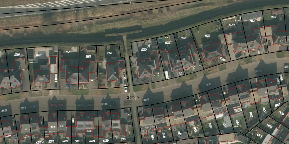 Het perceel waarop Gording 89 staat heeft een oppervlakte van 620 m². Dit is een groot perceel. De perceeloppervlakte wordt geregistreerd door het Kadaster. Gedetailleerde informatie over de maten van dit perceel kunt u vinden in het rapport Kadastrale kaart met maatvoering van Gording 89.