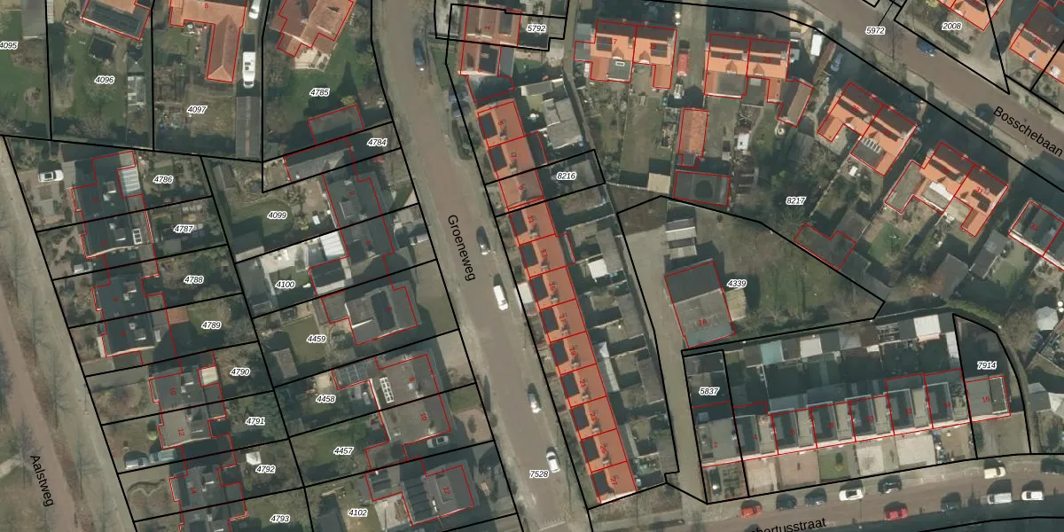 Het perceel waarop Groeneweg 13 staat heeft een oppervlakte van 7715 m². Dit is een zeer groot perceel. De perceeloppervlakte wordt geregistreerd door het Kadaster. Gedetailleerde informatie over de maten van dit perceel kunt u vinden in het rapport Kadastrale kaart met maatvoering van Groeneweg 13.