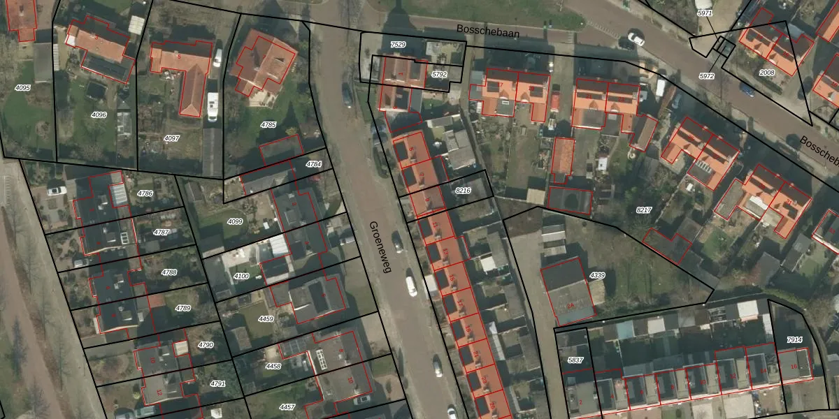 Gebruik de zoekbalk of klik op een perceel voor informatie over de adressen binnen dit perceel.