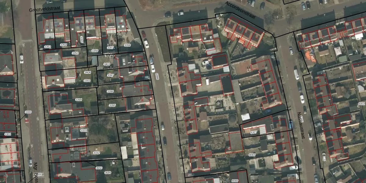 Het perceel waarop Grootveldstraat 14 staat heeft een oppervlakte van 6541 m². Dit is een zeer groot perceel. De perceeloppervlakte wordt geregistreerd door het Kadaster. Gedetailleerde informatie over de maten van dit perceel kunt u vinden in het rapport Kadastrale kaart met maatvoering van Grootveldstraat 14.