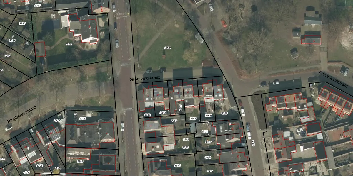Het perceel waarop Grootveldstraat 3 staat heeft een oppervlakte van 169 m². Dit is een middelgroot perceel. De perceeloppervlakte wordt geregistreerd door het Kadaster. Gedetailleerde informatie over de maten van dit perceel kunt u vinden in het rapport Kadastrale kaart met maatvoering van Grootveldstraat 3.