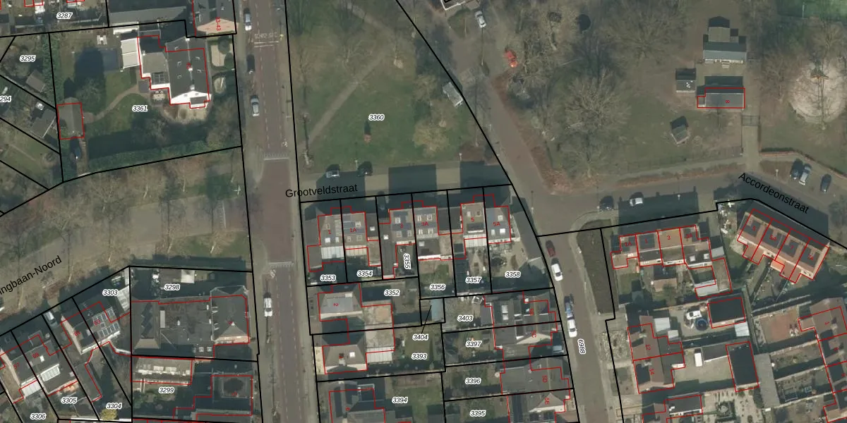 Het perceel waarop Grootveldstraat 3-A staat heeft een oppervlakte van 214 m². Dit is een middelgroot perceel. De perceeloppervlakte wordt geregistreerd door het Kadaster. Gedetailleerde informatie over de maten van dit perceel kunt u vinden in het rapport Kadastrale kaart met maatvoering van Grootveldstraat 3-A.