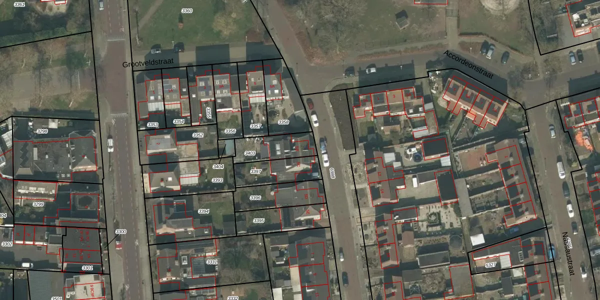 Gebruik de zoekbalk of klik op een perceel voor informatie over de adressen binnen dit perceel.
