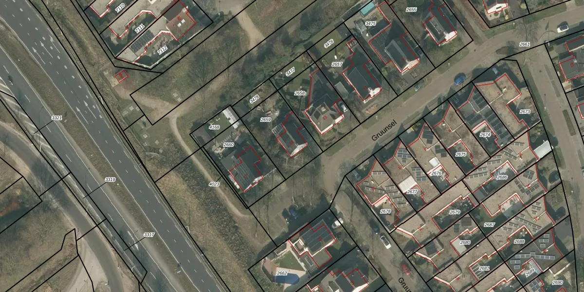 Het perceel waarop Gruunsel 15 staat heeft een oppervlakte van 418 m². Dit is een groot perceel. De perceeloppervlakte wordt geregistreerd door het Kadaster. Gedetailleerde informatie over de maten van dit perceel kunt u vinden in het rapport Kadastrale kaart met maatvoering van Gruunsel 15.