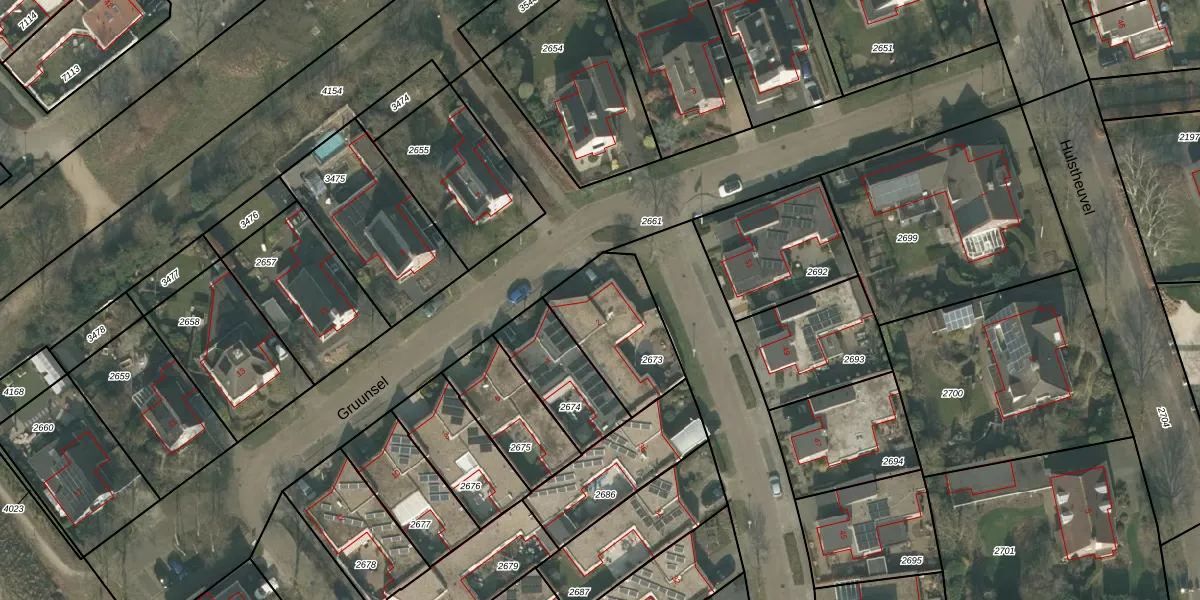 Het perceel waarop Gruunsel 2 staat heeft een oppervlakte van 352 m². Dit is een groot perceel. De perceeloppervlakte wordt geregistreerd door het Kadaster. Gedetailleerde informatie over de maten van dit perceel kunt u vinden in het rapport Kadastrale kaart met maatvoering van Gruunsel 2.