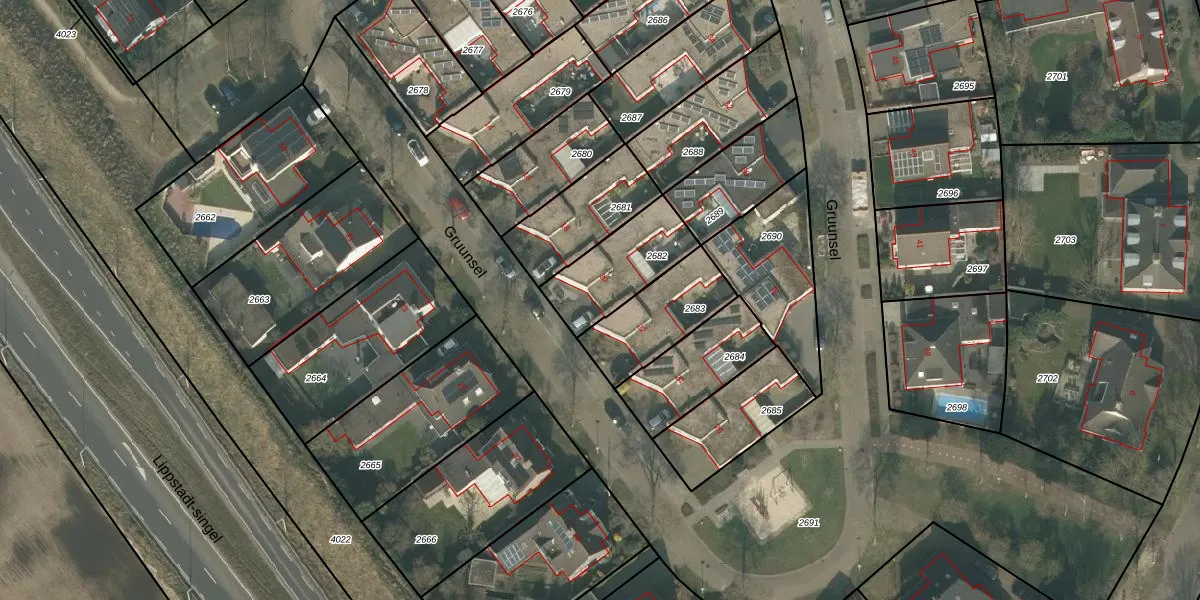Het perceel waarop Gruunsel 20 staat heeft een oppervlakte van 273 m². Dit is een middelgroot perceel. De perceeloppervlakte wordt geregistreerd door het Kadaster. Gedetailleerde informatie over de maten van dit perceel kunt u vinden in het rapport Kadastrale kaart met maatvoering van Gruunsel 20.
