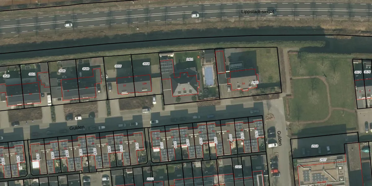 Gulden 12 is gelegen op kadastraal perceel UDN00P2401. Deze kadastrale aanduiding is uniek en wordt gebruikt door het Kadaster om eigendomsrechten en andere zakelijke rechten vast te leggen. Het perceel maakt onderdeel uit van de kadastrale gemeente Uden.