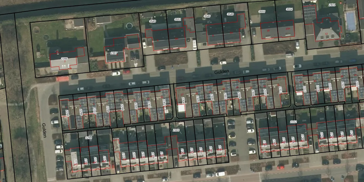 Gebruik de zoekbalk of klik op een perceel voor informatie over de adressen binnen dit perceel.