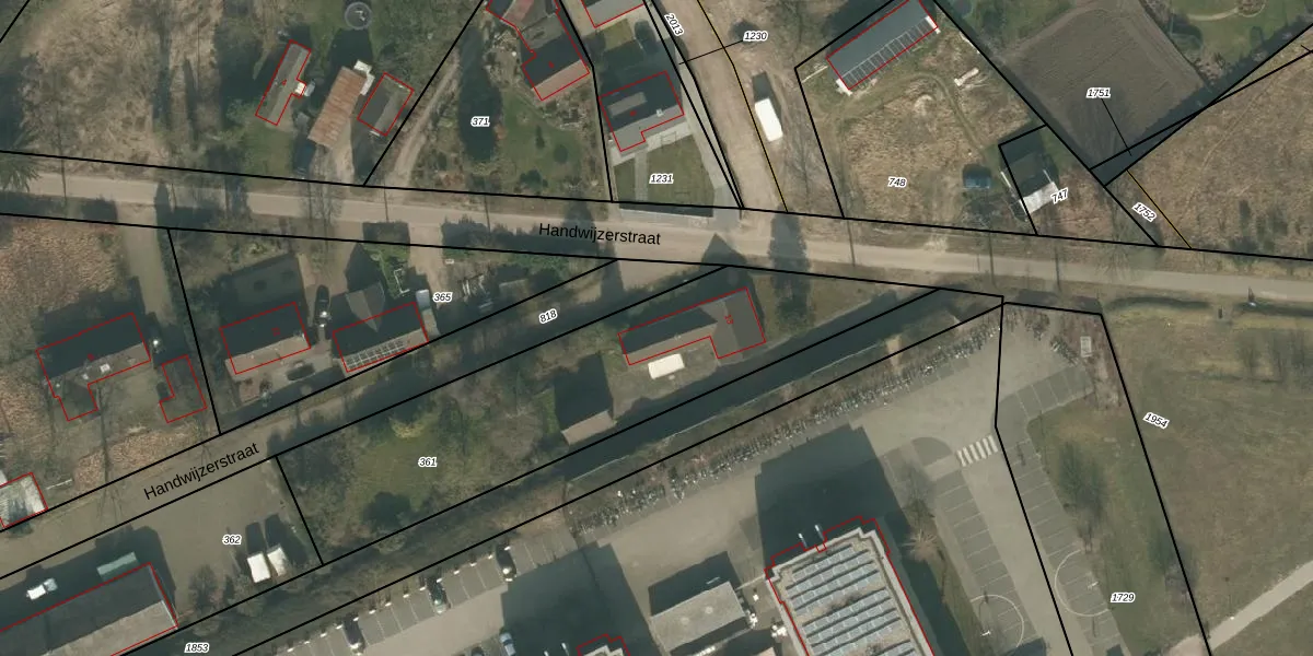 Handwijzerstraat 13 is gelegen op kadastraal perceel UDN00Q361. Deze kadastrale aanduiding is uniek en wordt gebruikt door het Kadaster om eigendomsrechten en andere zakelijke rechten vast te leggen. Het perceel maakt onderdeel uit van de kadastrale gemeente Uden.