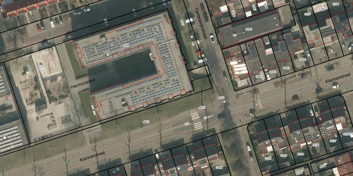 Het perceel waarop Harmoniehof 26 staat heeft een oppervlakte van 4845 m². Dit is een zeer groot perceel. De perceeloppervlakte wordt geregistreerd door het Kadaster. Gedetailleerde informatie over de maten van dit perceel kunt u vinden in het rapport Kadastrale kaart met maatvoering van Harmoniehof 26.