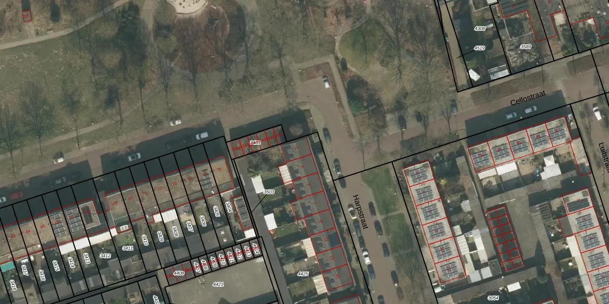 Het perceel waarop Harpstraat 1 staat heeft een oppervlakte van 2093 m². Dit is een zeer groot perceel. De perceeloppervlakte wordt geregistreerd door het Kadaster. Gedetailleerde informatie over de maten van dit perceel kunt u vinden in het rapport Kadastrale kaart met maatvoering van Harpstraat 1.
