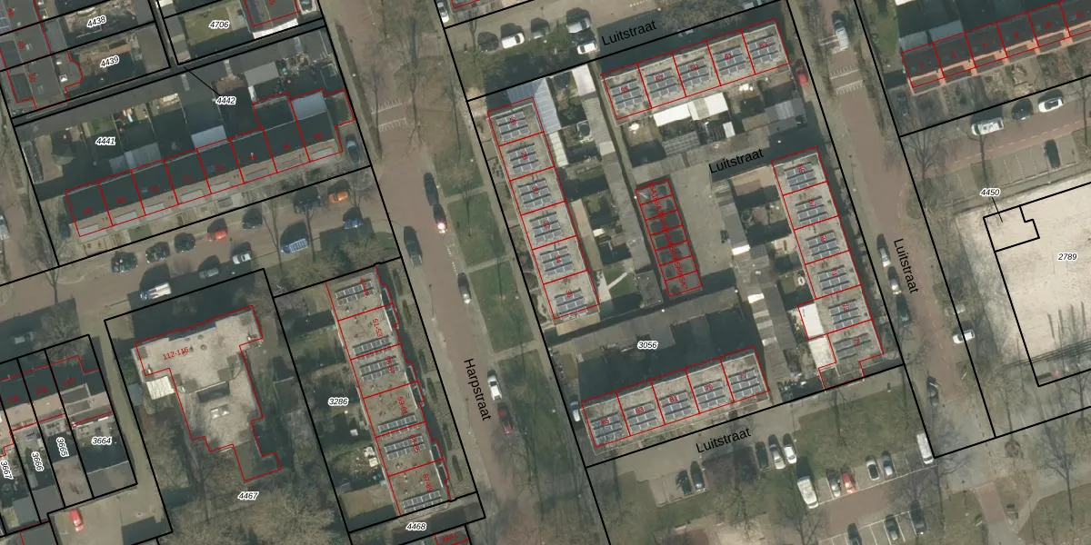 Het perceel waarop Harpstraat 34 staat heeft een oppervlakte van 4347 m². Dit is een zeer groot perceel. De perceeloppervlakte wordt geregistreerd door het Kadaster. Gedetailleerde informatie over de maten van dit perceel kunt u vinden in het rapport Kadastrale kaart met maatvoering van Harpstraat 34.