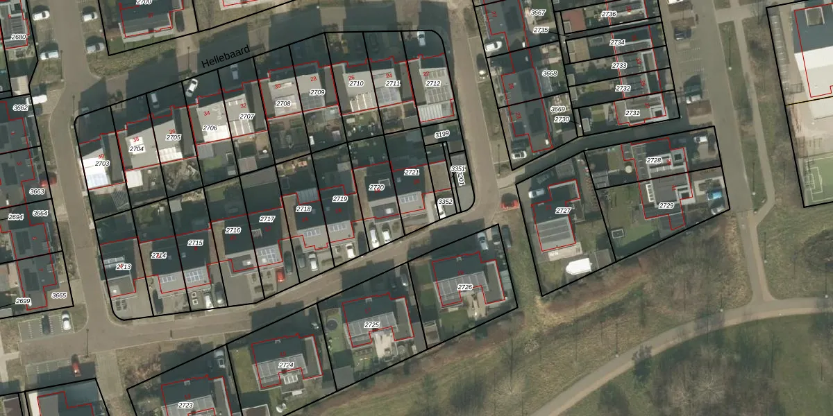 Gebruik de zoekbalk of klik op een perceel voor informatie over de adressen binnen dit perceel.