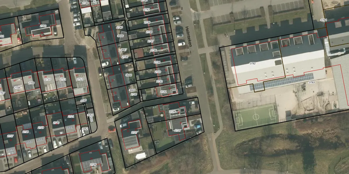 Het perceel waarop Helmteken 37 staat heeft een oppervlakte van 162 m². Dit is een middelgroot perceel. De perceeloppervlakte wordt geregistreerd door het Kadaster. Gedetailleerde informatie over de maten van dit perceel kunt u vinden in het rapport Kadastrale kaart met maatvoering van Helmteken 37.