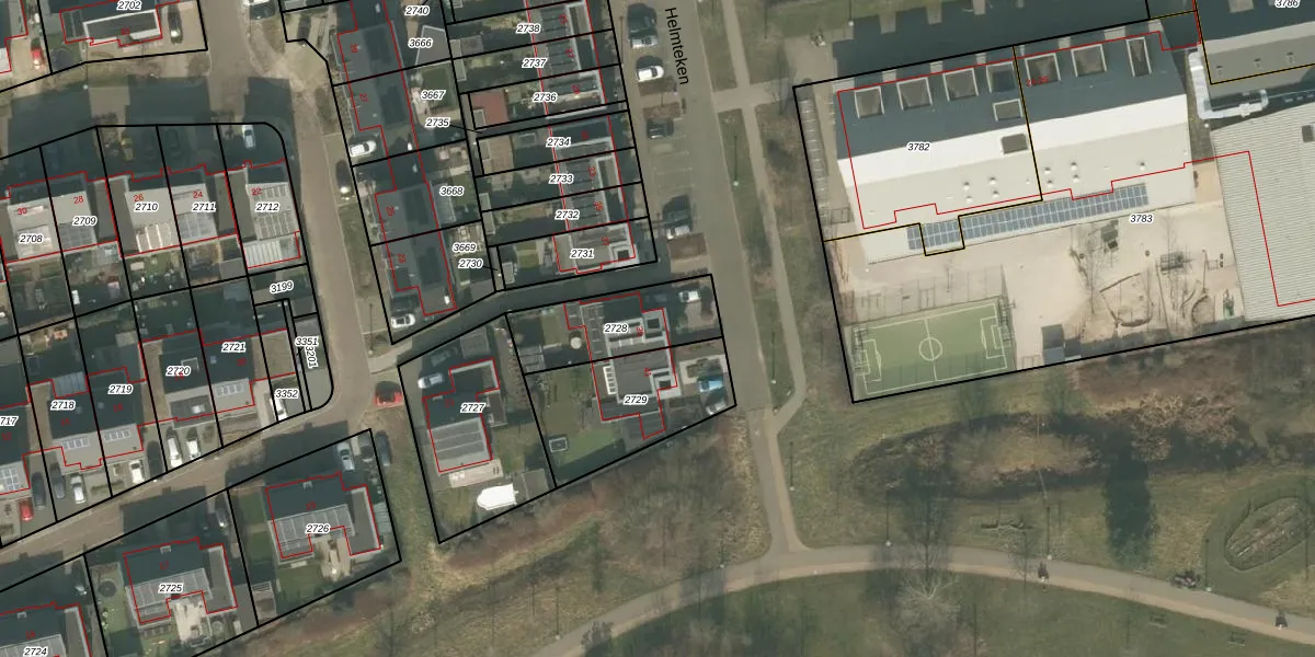 Het perceel waarop Helmteken 39 staat heeft een oppervlakte van 305 m². Dit is een groot perceel. De perceeloppervlakte wordt geregistreerd door het Kadaster. Gedetailleerde informatie over de maten van dit perceel kunt u vinden in het rapport Kadastrale kaart met maatvoering van Helmteken 39.