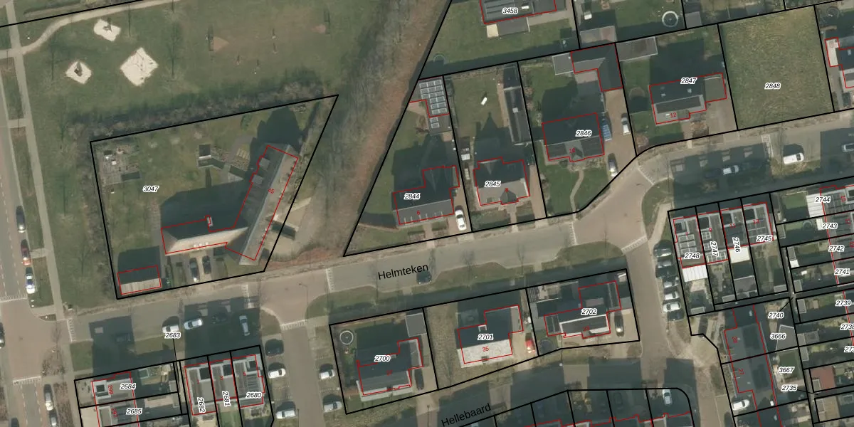Het perceel waarop Helmteken 6 staat heeft een oppervlakte van 685 m². Dit is een groot perceel. De perceeloppervlakte wordt geregistreerd door het Kadaster. Gedetailleerde informatie over de maten van dit perceel kunt u vinden in het rapport Kadastrale kaart met maatvoering van Helmteken 6.