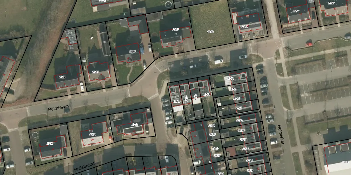 Het perceel waarop Helmteken 7 staat heeft een oppervlakte van 163 m². Dit is een middelgroot perceel. De perceeloppervlakte wordt geregistreerd door het Kadaster. Gedetailleerde informatie over de maten van dit perceel kunt u vinden in het rapport Kadastrale kaart met maatvoering van Helmteken 7.