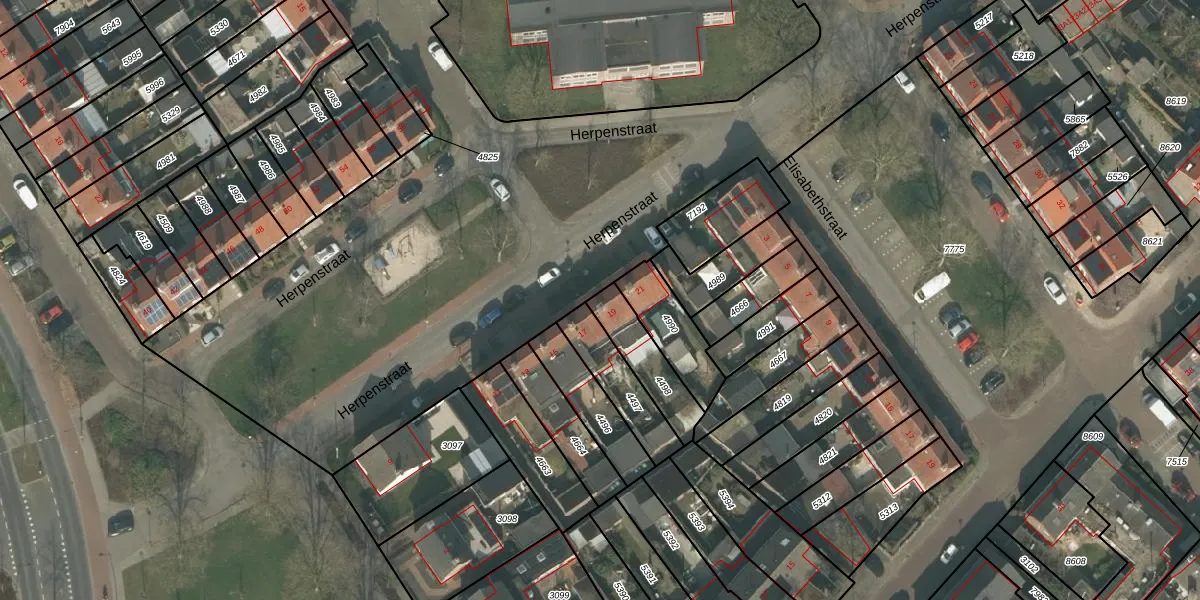 Gebruik de zoekbalk of klik op een perceel voor informatie over de adressen binnen dit perceel.