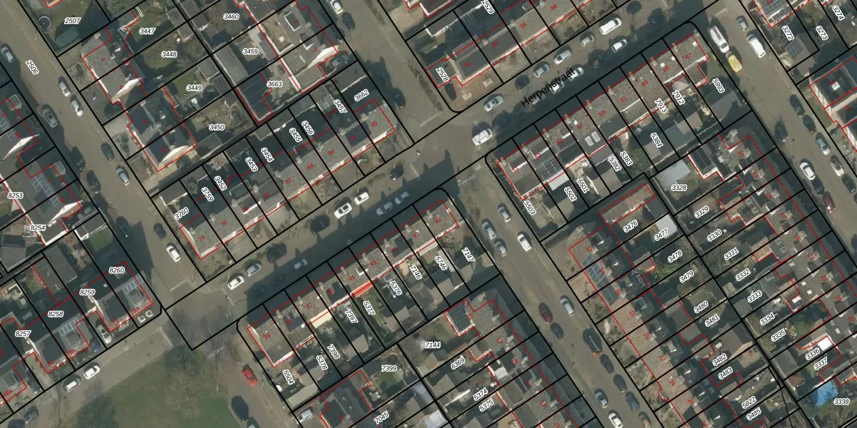 Het perceel waarop Herpenstraat 49 staat heeft een oppervlakte van 202 m². Dit is een middelgroot perceel. De perceeloppervlakte wordt geregistreerd door het Kadaster. Gedetailleerde informatie over de maten van dit perceel kunt u vinden in het rapport Kadastrale kaart met maatvoering van Herpenstraat 49.