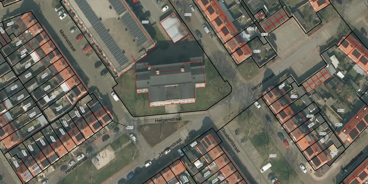 Het perceel waarop Herpenstraat 60-B staat heeft een oppervlakte van 4275 m². Dit is een zeer groot perceel. De perceeloppervlakte wordt geregistreerd door het Kadaster. Gedetailleerde informatie over de maten van dit perceel kunt u vinden in het rapport Kadastrale kaart met maatvoering van Herpenstraat 60-B.