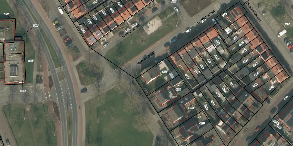Het perceel waarop Herpenstraat 9 staat heeft een oppervlakte van 372 m². Dit is een groot perceel. De perceeloppervlakte wordt geregistreerd door het Kadaster. Gedetailleerde informatie over de maten van dit perceel kunt u vinden in het rapport Kadastrale kaart met maatvoering van Herpenstraat 9.