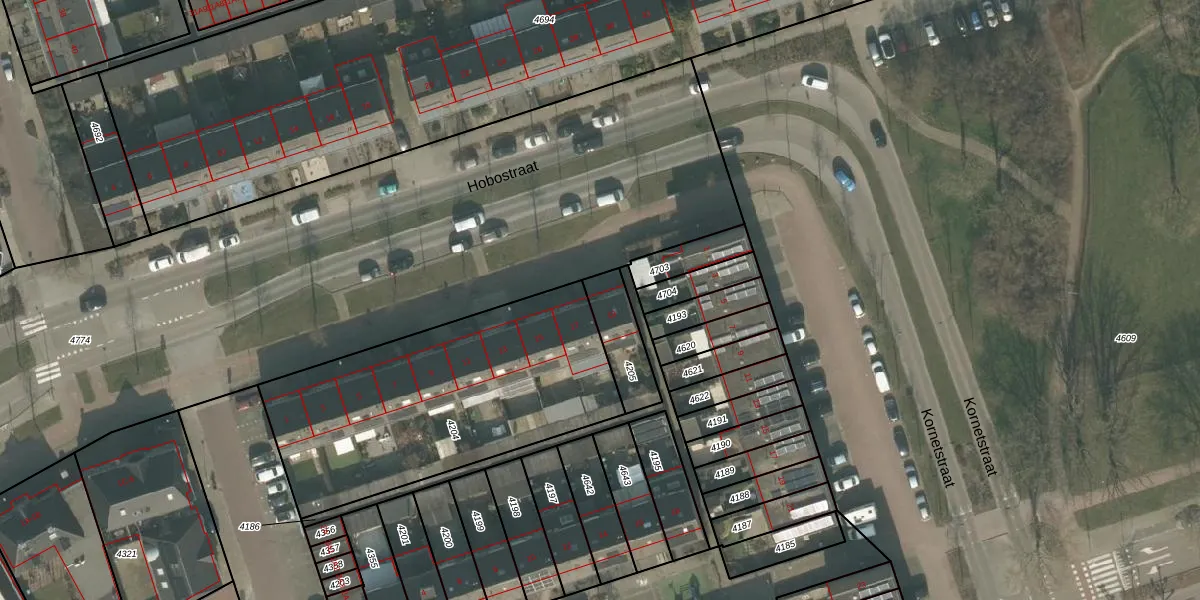 Het perceel waarop Hobostraat 19 staat heeft een oppervlakte van 152 m². Dit is een middelgroot perceel. De perceeloppervlakte wordt geregistreerd door het Kadaster. Gedetailleerde informatie over de maten van dit perceel kunt u vinden in het rapport Kadastrale kaart met maatvoering van Hobostraat 19.