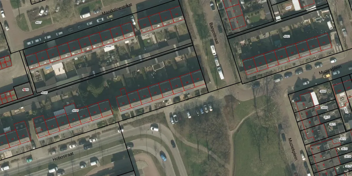 Het perceel waarop Hobostraat 44 staat heeft een oppervlakte van 4204 m². Dit is een zeer groot perceel. De perceeloppervlakte wordt geregistreerd door het Kadaster. Gedetailleerde informatie over de maten van dit perceel kunt u vinden in het rapport Kadastrale kaart met maatvoering van Hobostraat 44.