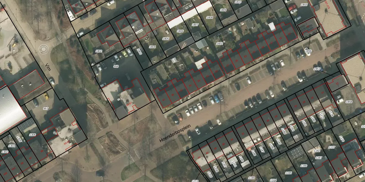 Hoenderbosplein 37 is gelegen op kadastraal perceel UDN00P1602. Deze kadastrale aanduiding is uniek en wordt gebruikt door het Kadaster om eigendomsrechten en andere zakelijke rechten vast te leggen. Het perceel maakt onderdeel uit van de kadastrale gemeente Uden.
