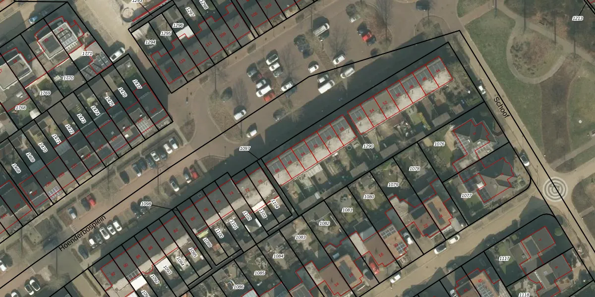 Hoenderbosplein 64 is gelegen op kadastraal perceel UDN00P1290. Deze kadastrale aanduiding is uniek en wordt gebruikt door het Kadaster om eigendomsrechten en andere zakelijke rechten vast te leggen. Het perceel maakt onderdeel uit van de kadastrale gemeente Uden.