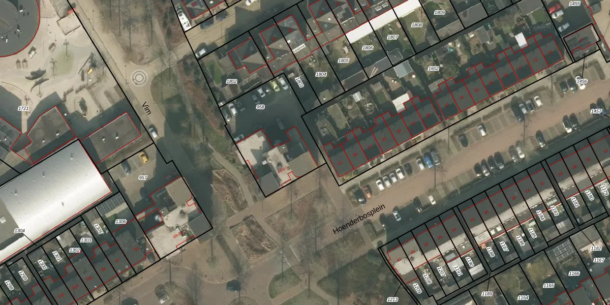 Hoenderbosplein 67 is gelegen op kadastraal perceel UDN00P958. Deze kadastrale aanduiding is uniek en wordt gebruikt door het Kadaster om eigendomsrechten en andere zakelijke rechten vast te leggen. Het perceel maakt onderdeel uit van de kadastrale gemeente Uden.