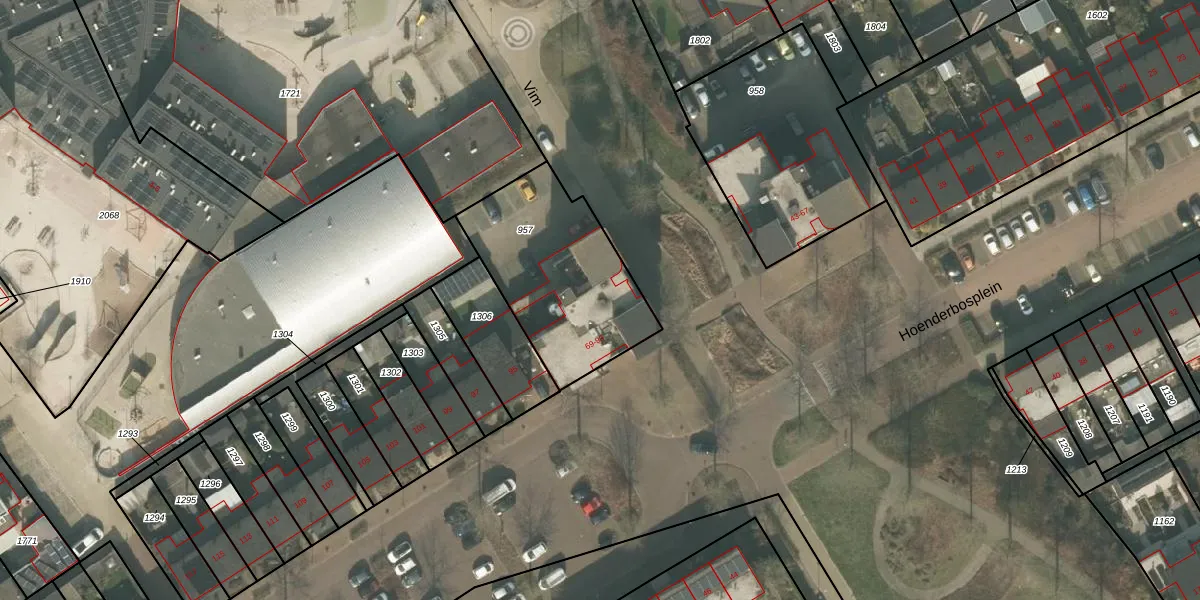 Hoenderbosplein 71 is gelegen op kadastraal perceel UDN00P957. Deze kadastrale aanduiding is uniek en wordt gebruikt door het Kadaster om eigendomsrechten en andere zakelijke rechten vast te leggen. Het perceel maakt onderdeel uit van de kadastrale gemeente Uden.