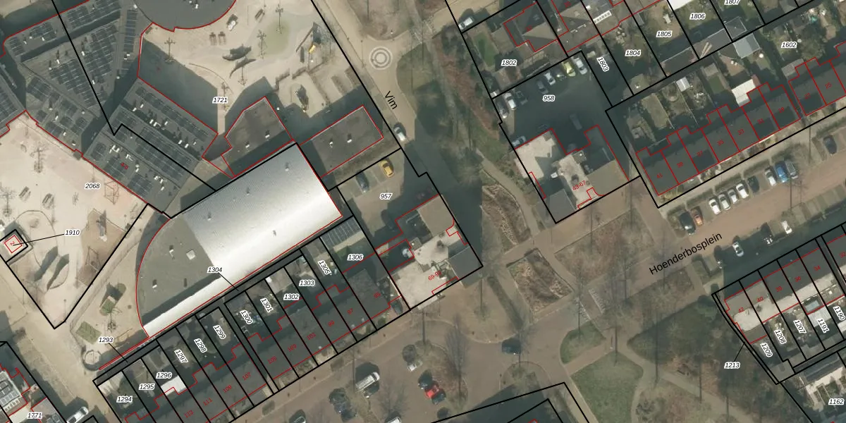 Hoenderbosplein 93 is gelegen op kadastraal perceel UDN00P957. Deze kadastrale aanduiding is uniek en wordt gebruikt door het Kadaster om eigendomsrechten en andere zakelijke rechten vast te leggen. Het perceel maakt onderdeel uit van de kadastrale gemeente Uden.
