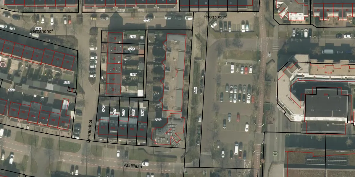 Hoogzoggel 103 is gelegen op kadastraal perceel UDN00I2633. Deze kadastrale aanduiding is uniek en wordt gebruikt door het Kadaster om eigendomsrechten en andere zakelijke rechten vast te leggen. Het perceel maakt onderdeel uit van de kadastrale gemeente Uden.