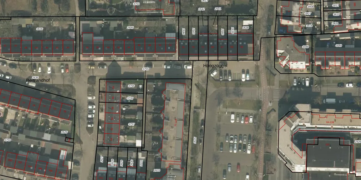 Hoogzoggel 77 is gelegen op kadastraal perceel UDN00I2633. Deze kadastrale aanduiding is uniek en wordt gebruikt door het Kadaster om eigendomsrechten en andere zakelijke rechten vast te leggen. Het perceel maakt onderdeel uit van de kadastrale gemeente Uden.