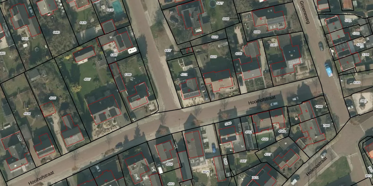 Het perceel waarop Hooihofstraat 20 staat heeft een oppervlakte van 412 m². Dit is een groot perceel. De perceeloppervlakte wordt geregistreerd door het Kadaster. Gedetailleerde informatie over de maten van dit perceel kunt u vinden in het rapport Kadastrale kaart met maatvoering van Hooihofstraat 20.