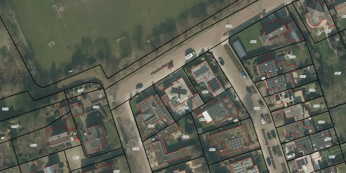 Gebruik de zoekbalk of klik op een perceel voor informatie over de adressen binnen dit perceel.