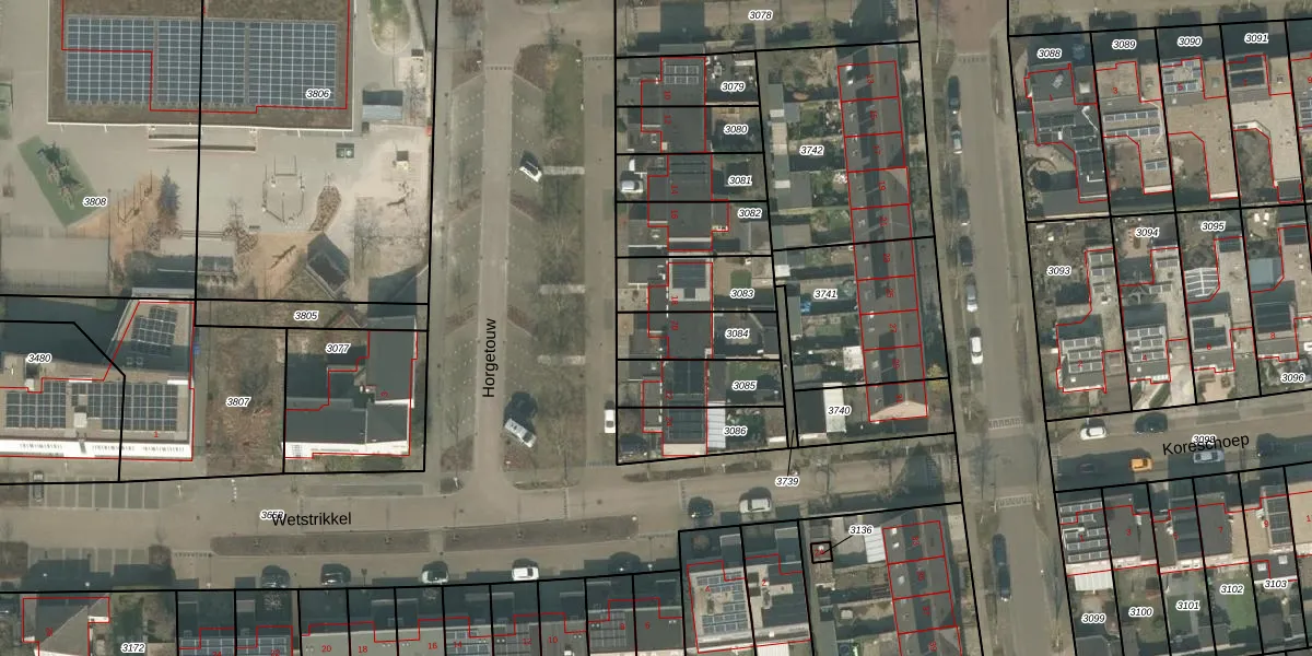 Het perceel waarop Horgetouw 20 staat heeft een oppervlakte van 182 m². Dit is een middelgroot perceel. De perceeloppervlakte wordt geregistreerd door het Kadaster. Gedetailleerde informatie over de maten van dit perceel kunt u vinden in het rapport Kadastrale kaart met maatvoering van Horgetouw 20.