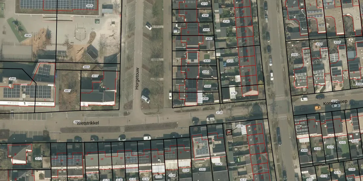 Het perceel waarop Horgetouw 22 staat heeft een oppervlakte van 182 m². Dit is een middelgroot perceel. De perceeloppervlakte wordt geregistreerd door het Kadaster. Gedetailleerde informatie over de maten van dit perceel kunt u vinden in het rapport Kadastrale kaart met maatvoering van Horgetouw 22.